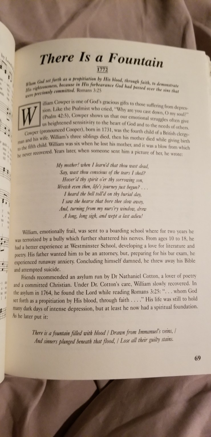 If the godly man William Cowper, who penned “There is a fountain” once examined himself and found himself emotionally frail and overcome with runaway anxiety to the point that he concluded that he was “damned” threw away his Bible and attempted suicide — how vile and wretched yet blessed and highly favored are we all who rest in the Lord and Trudy in His grace.