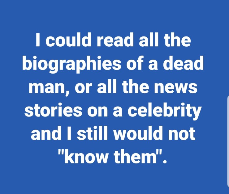 I could know all the answers “about” someone based on reading the opinions/ perspectives of others but never actually “know the person”.