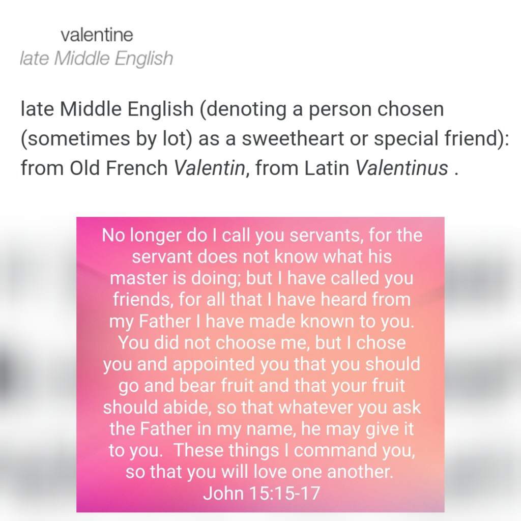 So the late middle English speaks of “valentine” as “a person chosen” as a “special friend”.