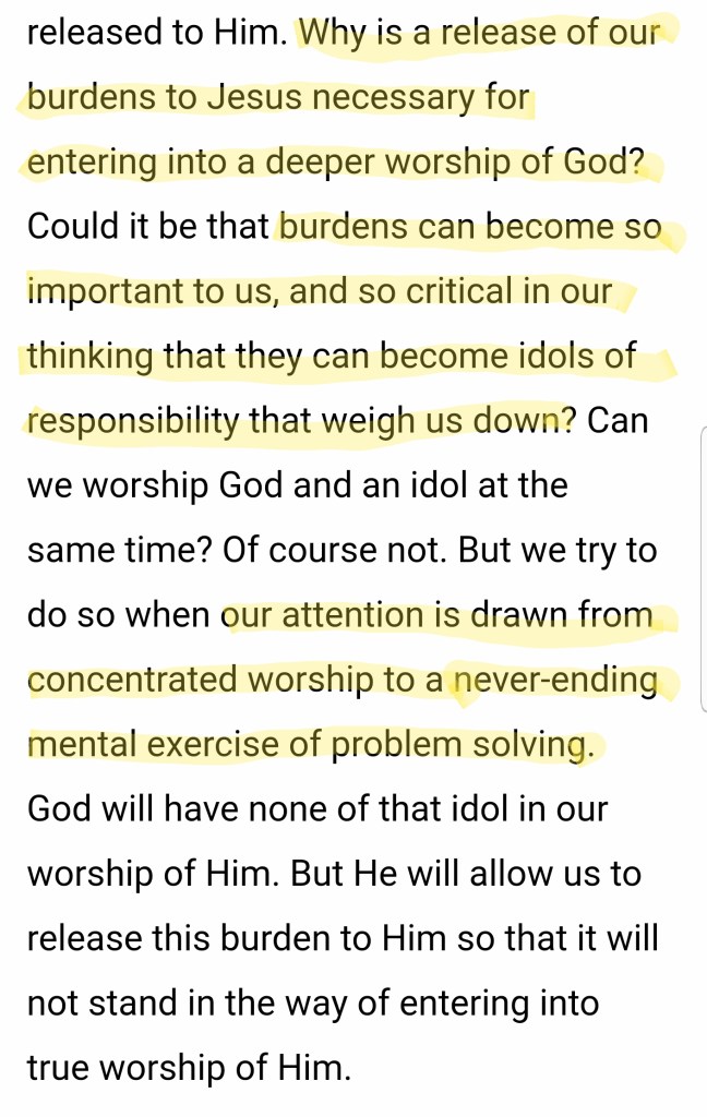 I wonder how often my prayers, my thoughts, and my worship has been focused on MY need instead of HIS sufficiency, on MY burdens instead of HIS strength and faithfulness.