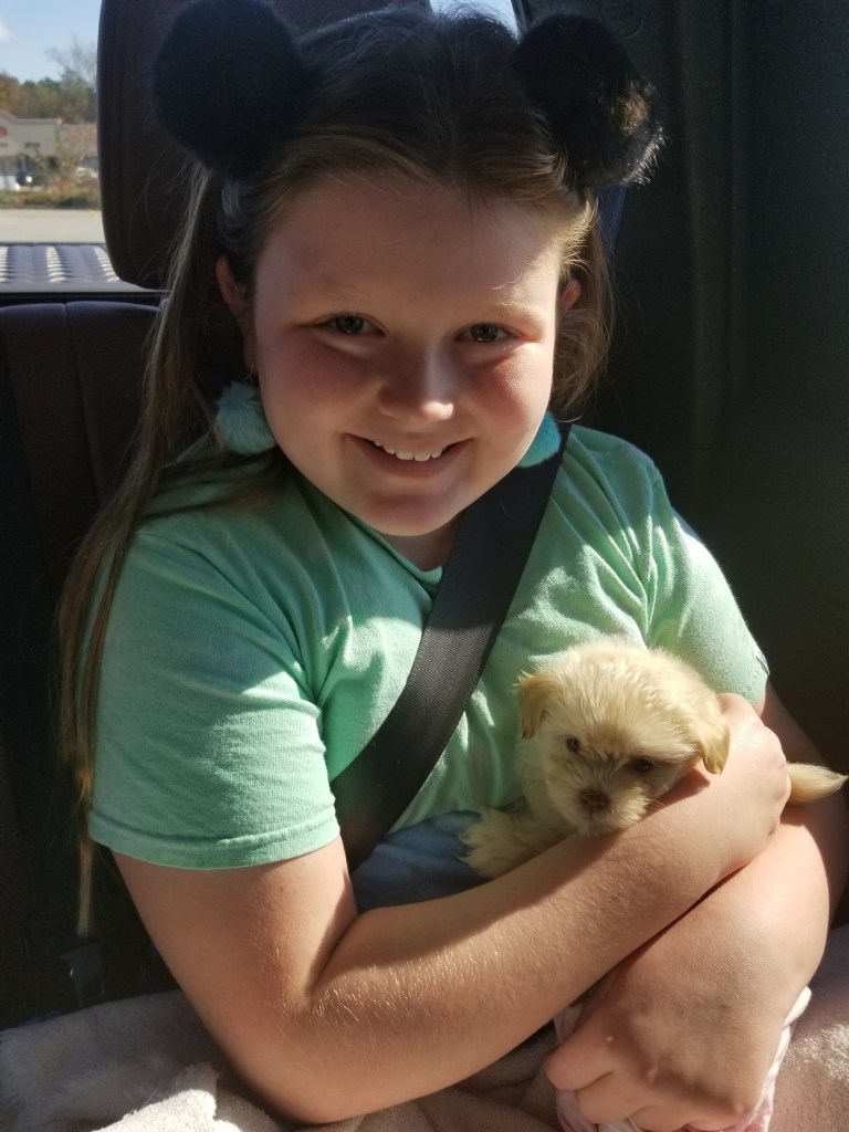 Yesterday, we picked up my daughter Mia’s puppy for an early birthday/ Christmas present. This picture is from right when we got her yesterday. The smile on my daughter’s face lit up my heart.