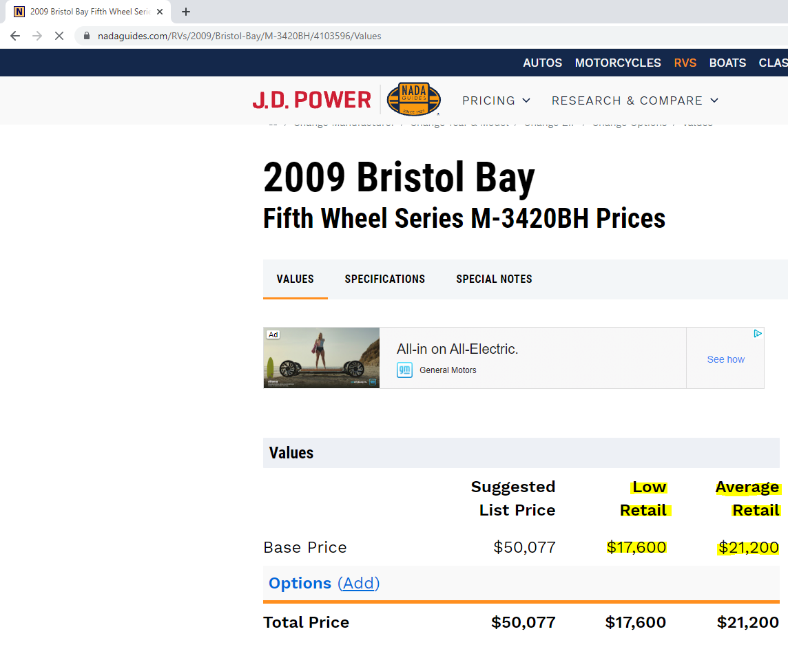 We have a 2009 Bristol Bay 3420BH Fifth Wheel Bunkhouse camper for sale. We originally purchased this camper in June 2016 from Camping World in Spartanburg, SC to live in while we built our new home. We do not currently have a vehicle with a fifth wheel hitch to tow this home on wheels, so we are hoping someone else can put it to use. NADA Guides lists low retail for this unit at $17,600 and average retail at $21,200 (REF: https://www.nadaguides.com/RVs/2009/Bristol-Bay/M-3420BH/4103596/Values ) and we are asking $9500 because we are looking for a quick sale. We have a clean title in hand, and the first person to bring us a reasonable offer and bring their truck to haul it away — it’s yours.