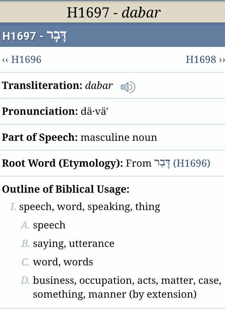 Looking at the definition of dabar primarily pointing towards speech and words, this reminds me of something Jesus said that seems to fit in this circumstance: